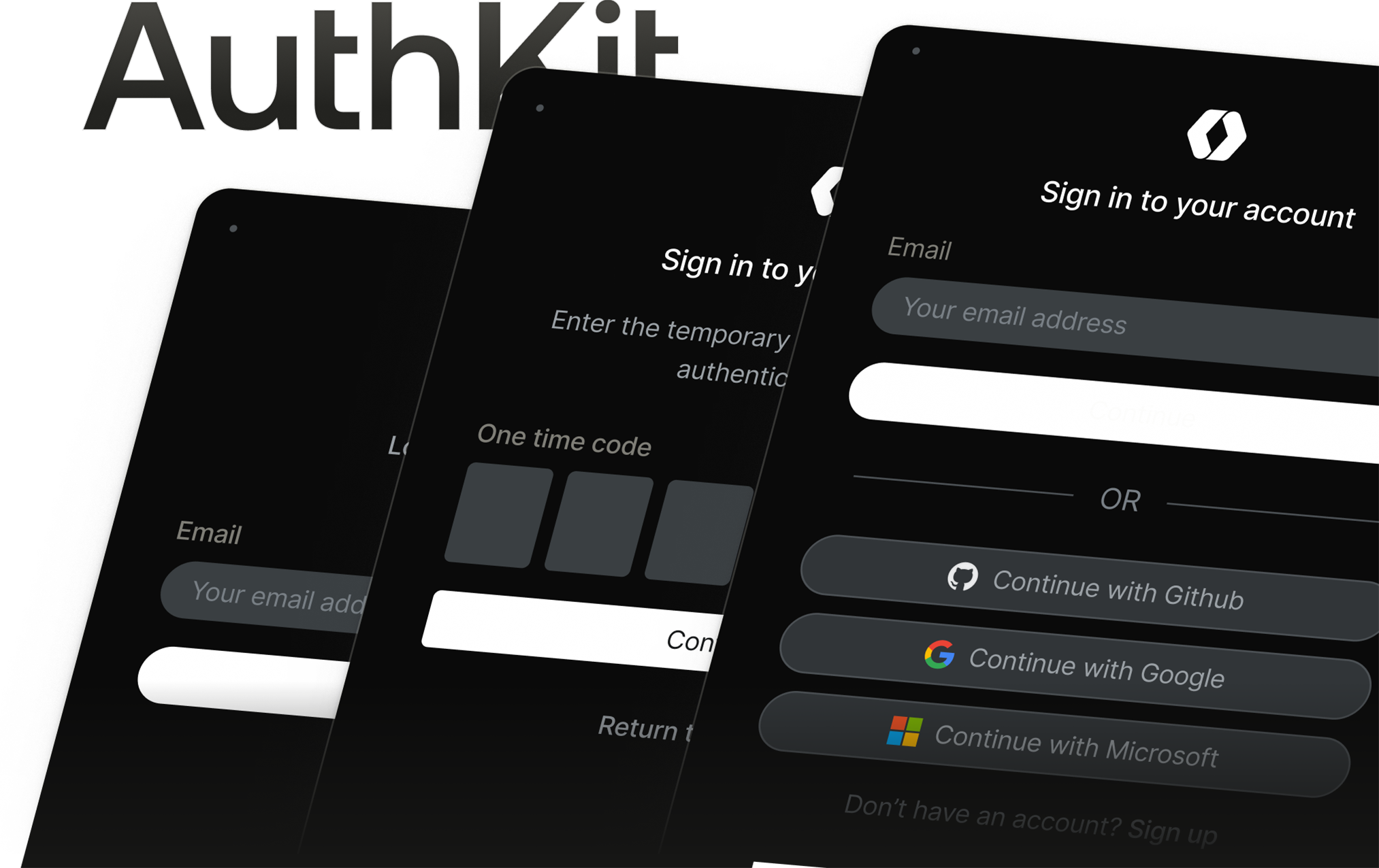 Login with GitHub, Google, Microsoft, or Apple ID, Passkey support, code sent via email, built-in rate limiting, geographical protection, and SSO. Learn more