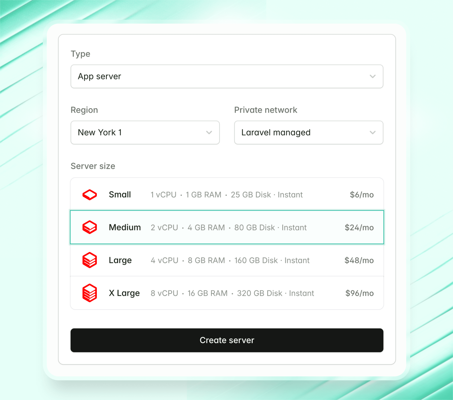 Starting at $6 per month, Laravel VPS is one of the most affordable VPS options available, making it accessible for both experimentation and production workloads. Depending on your plan, you can see how much your choice of vCPU, RAM, and storage will cost you at the end of each month in the Laravel VPS documentation.