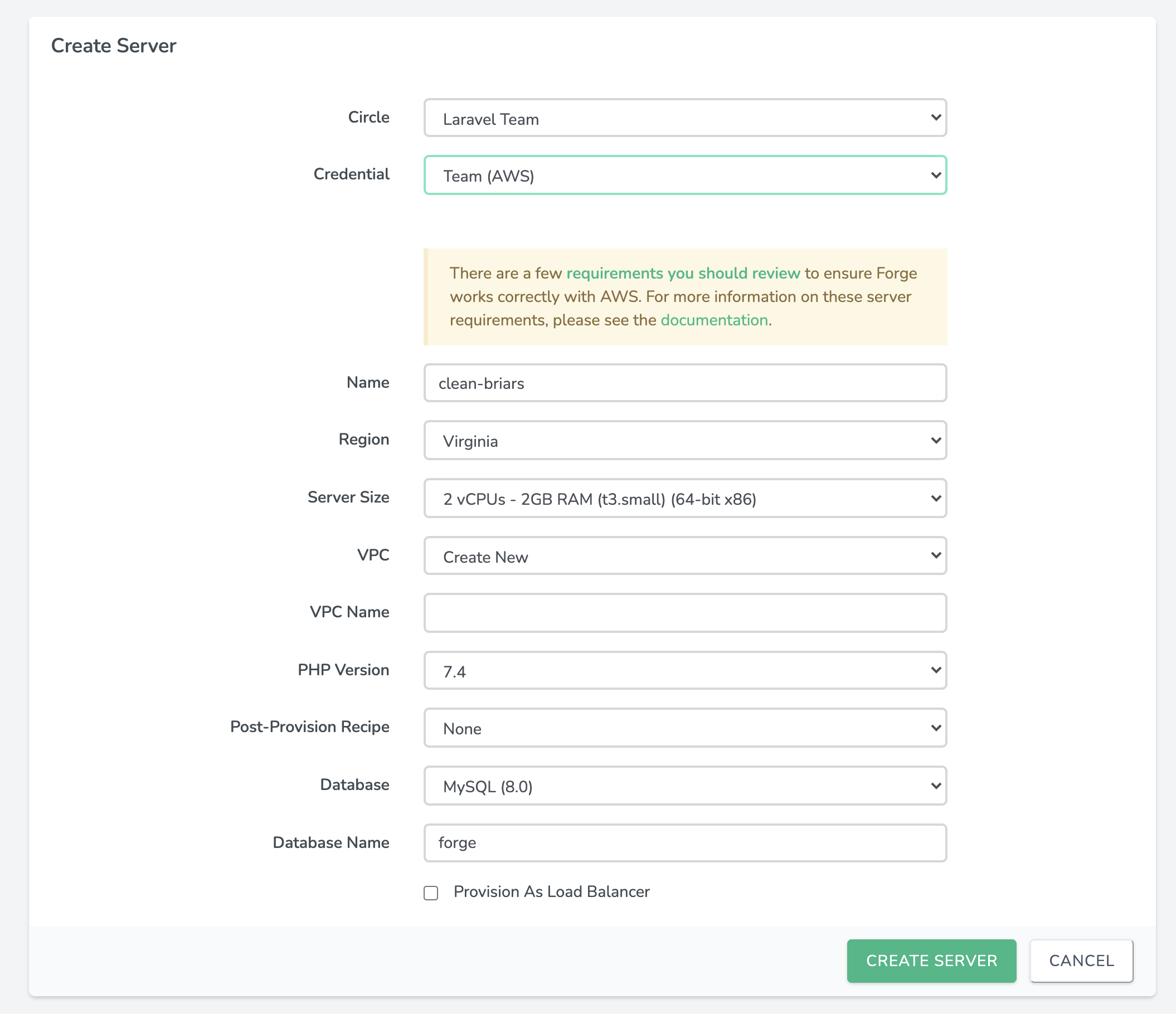 As a circle owner in Laravel Forge, you can now allow your circle members to create servers using the server provider credentials of your choice:
