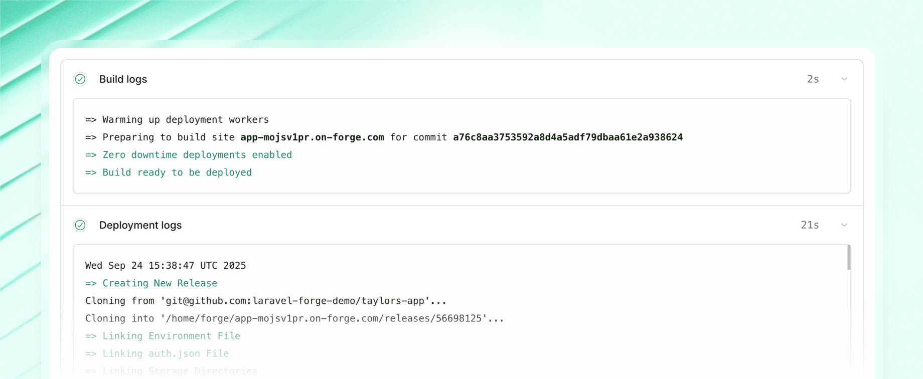 Zero-downtime deployments are now native to Laravel Forge, following the server management platform overhaul earlier this year. This means users can create new sites and avoid even those brief milliseconds of downtime while the server updates their code without having to integrate with Envoyer.