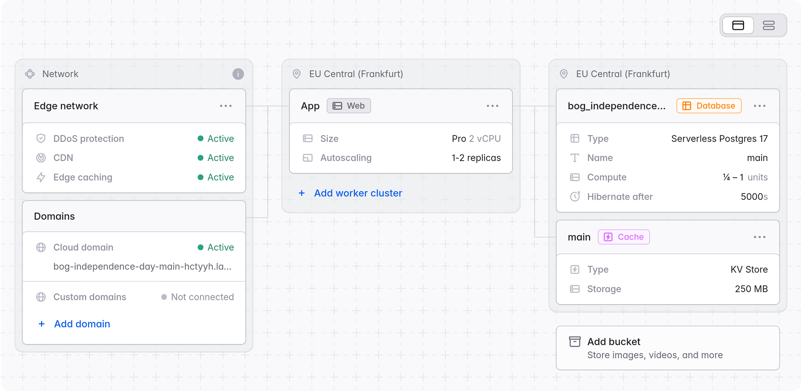 - A single Laravel application cluster on Laravel Cloud