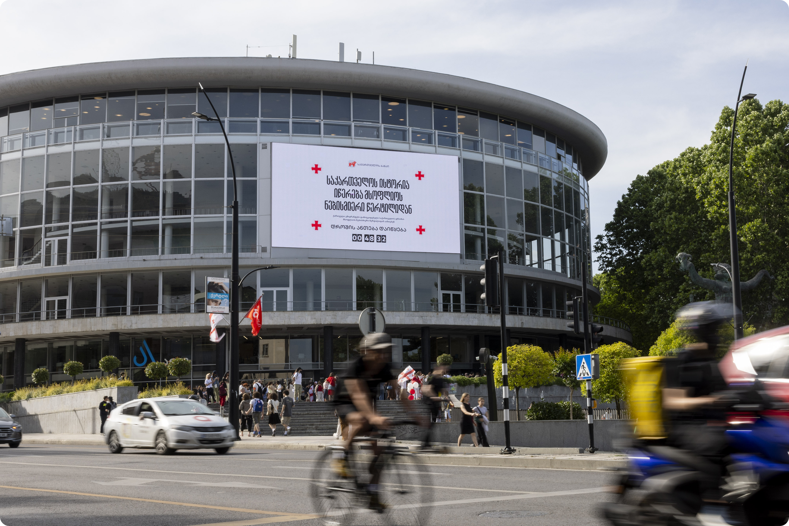 That interaction played out live on one of the largest LED screens in Georgia, turning the display into a massive public tribute. Though exact foot traffic wasn’t measured, hundreds gathered at the Tbilisi Philharmonic Hall during the four-hour campaign to watch the flag come to life dot by dot.