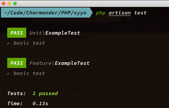 In addition to the phpunit command, you may now use the test Artisan command to run your tests. The Artisan test runner provides beautiful console UX and more information regarding the test that is currently running. In addition, the runner will automatically stop on the first test failure: