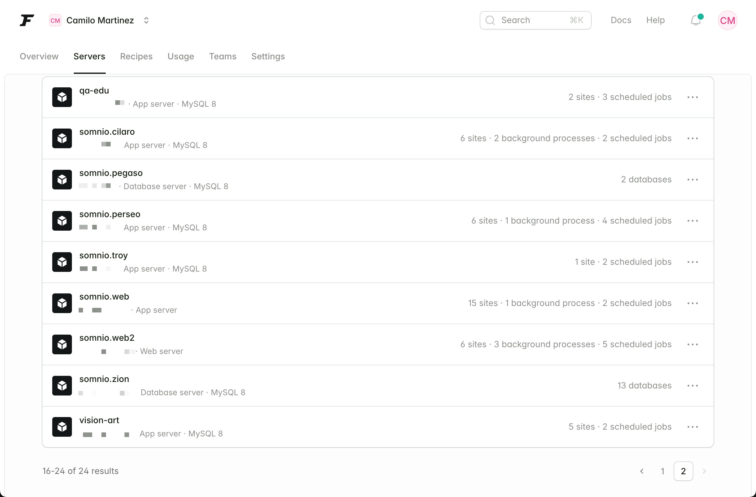Today, he manages over 20 servers for projects ranging from meal delivery CRMs to property management platforms and government applications in Colombia. Even with just a small team and remote collaborators, Forge lets him scale safely and efficiently.